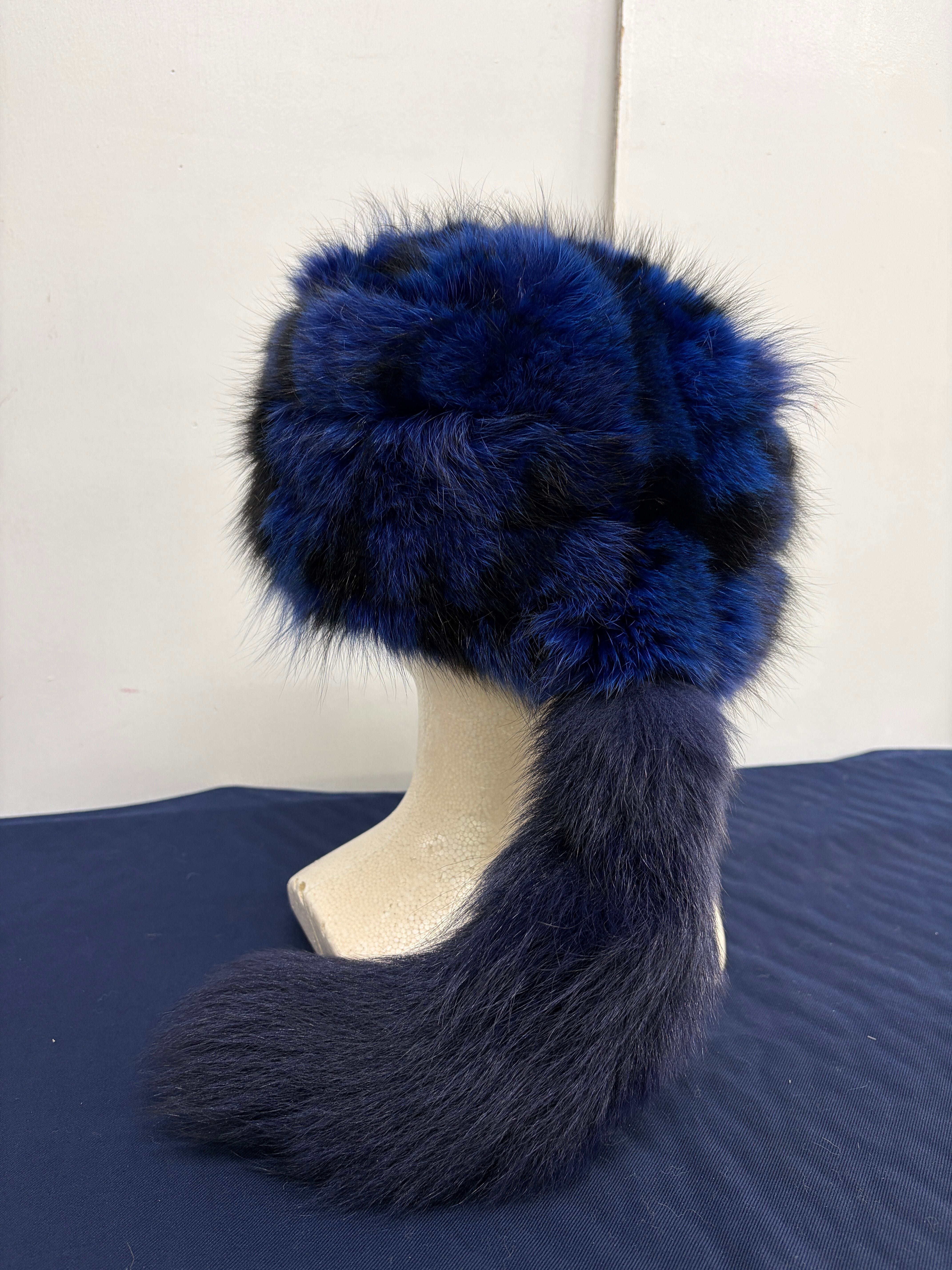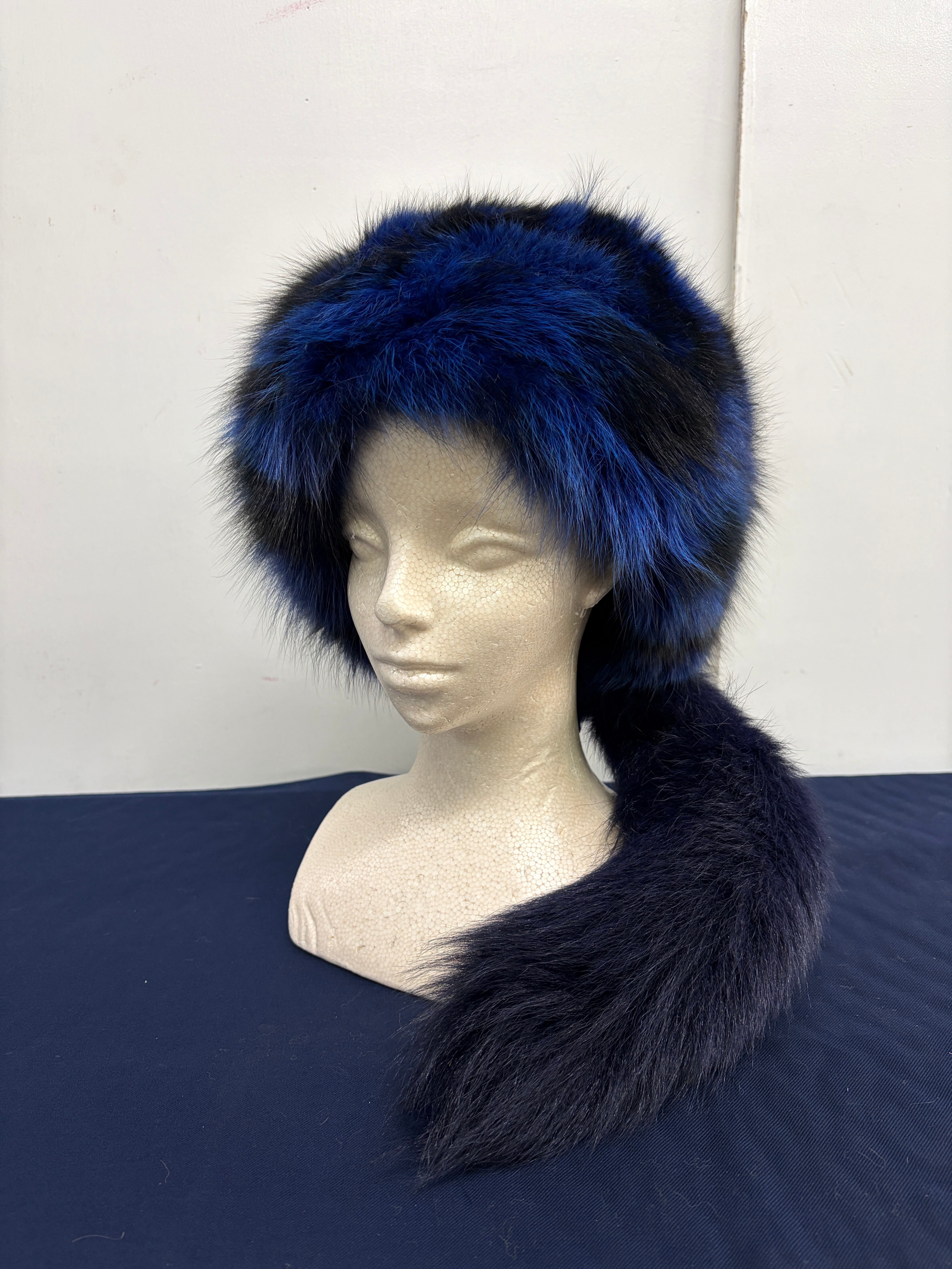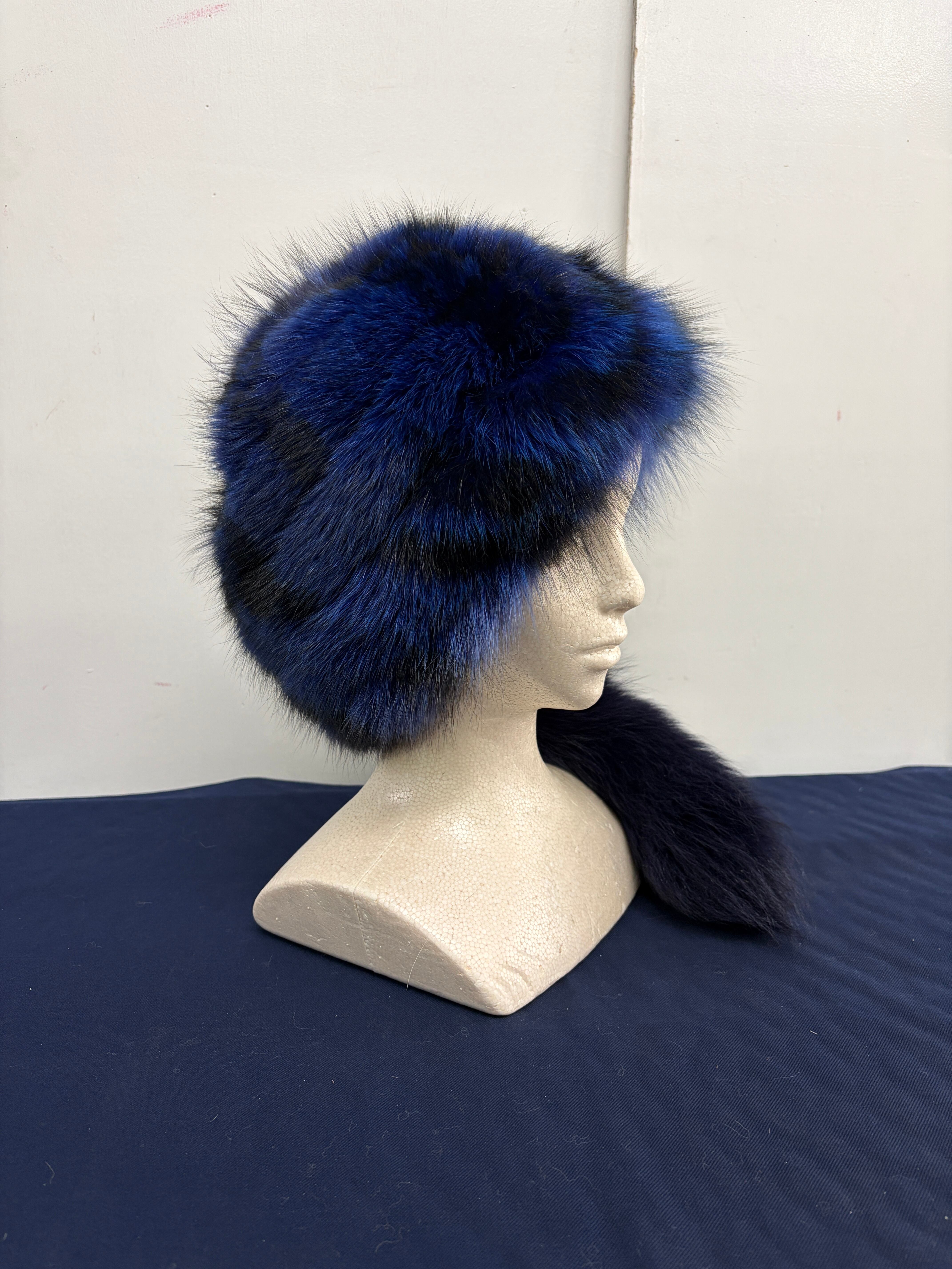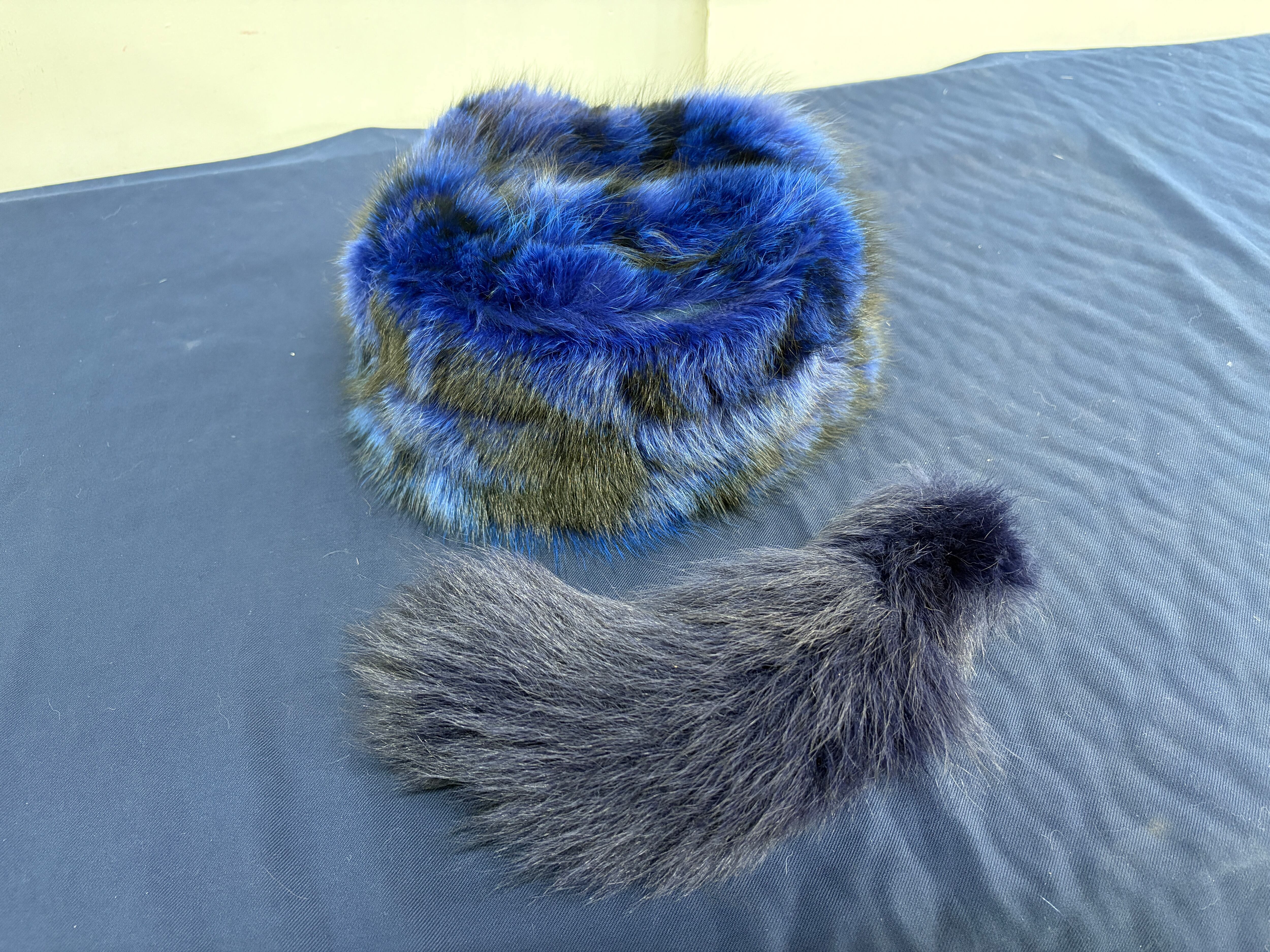 ### Davy Crockett hat ブルーFox刷毛染め 藍色 尻尾着脱ホック 60㎝・61㎝