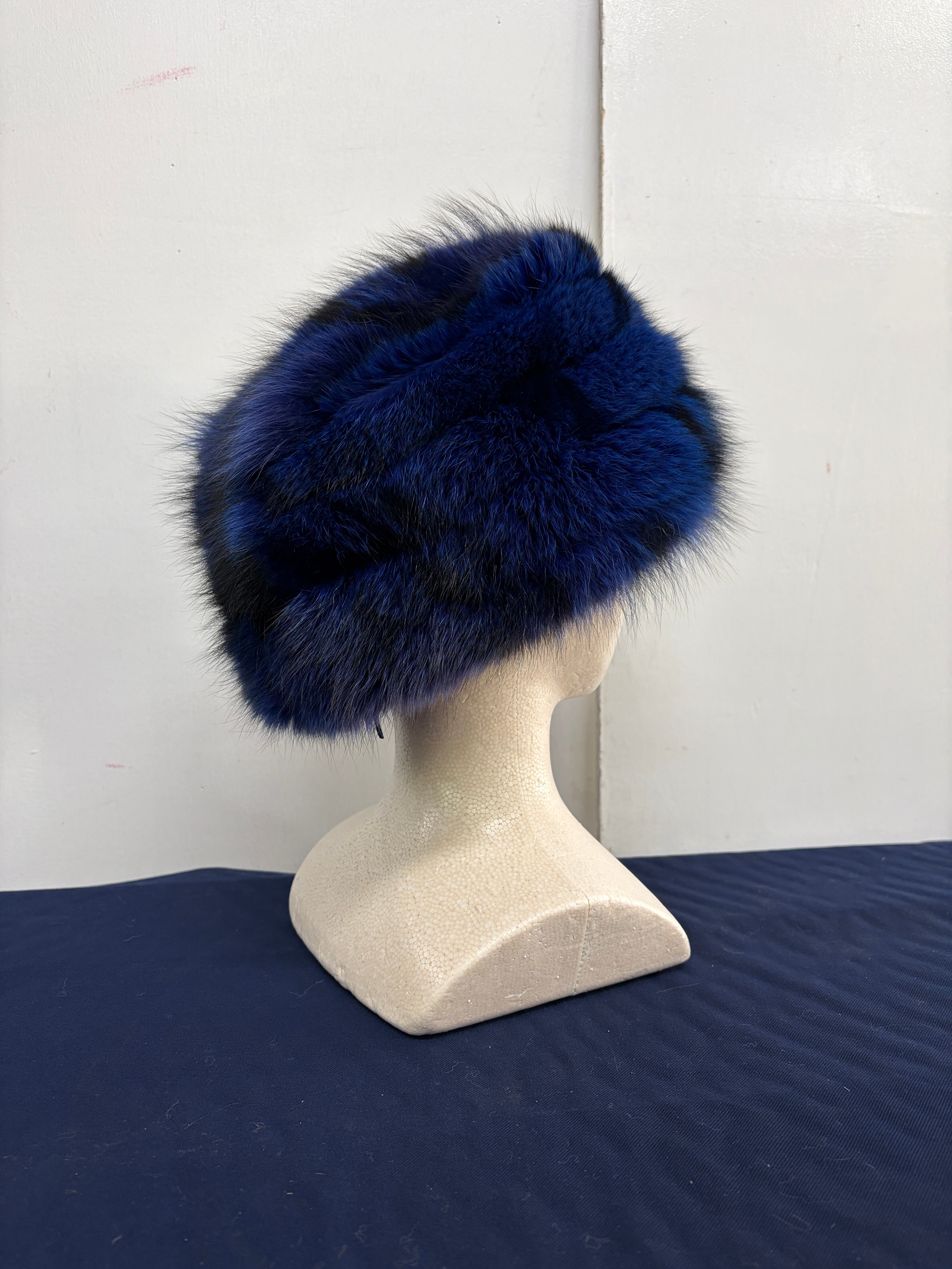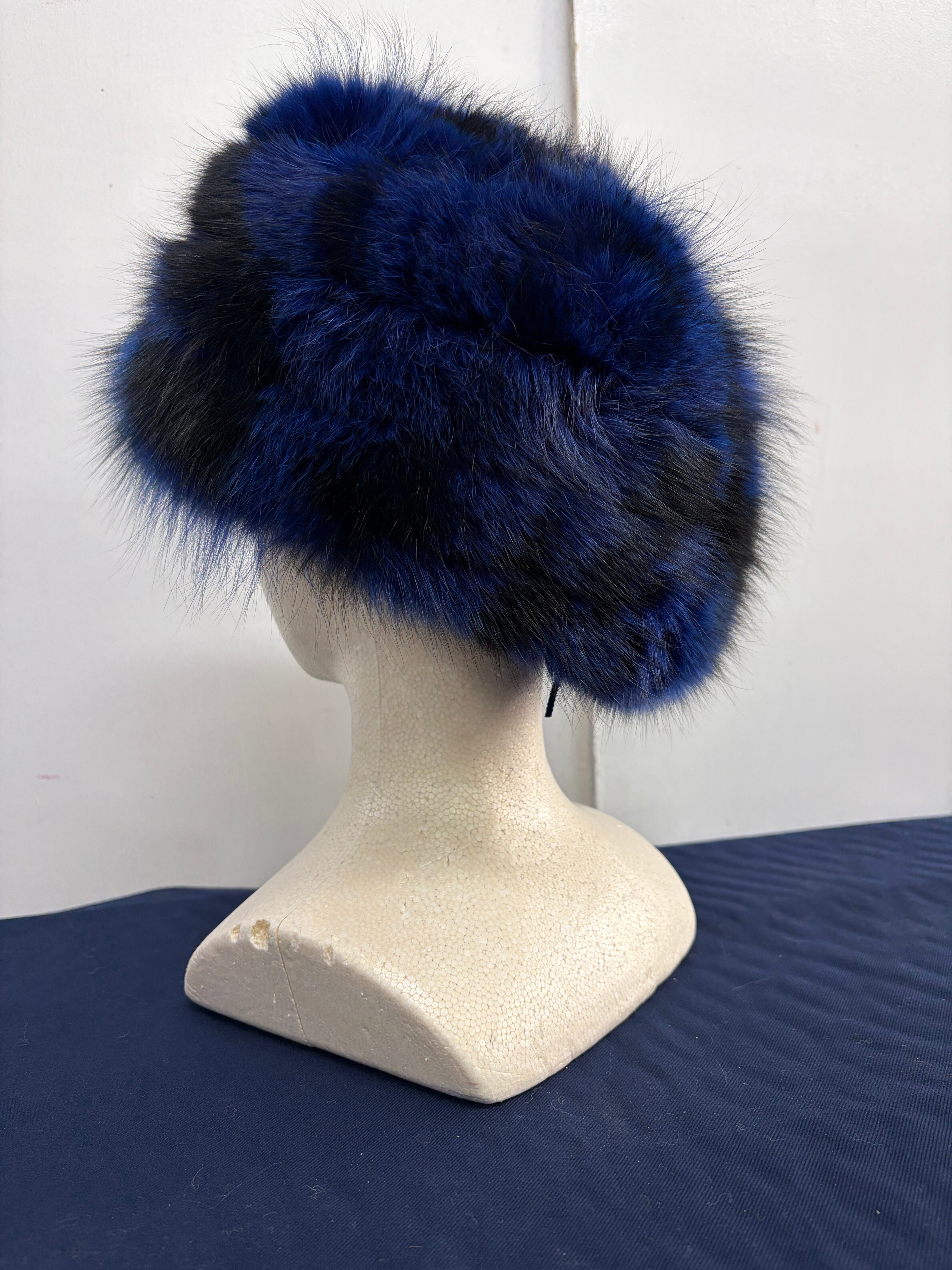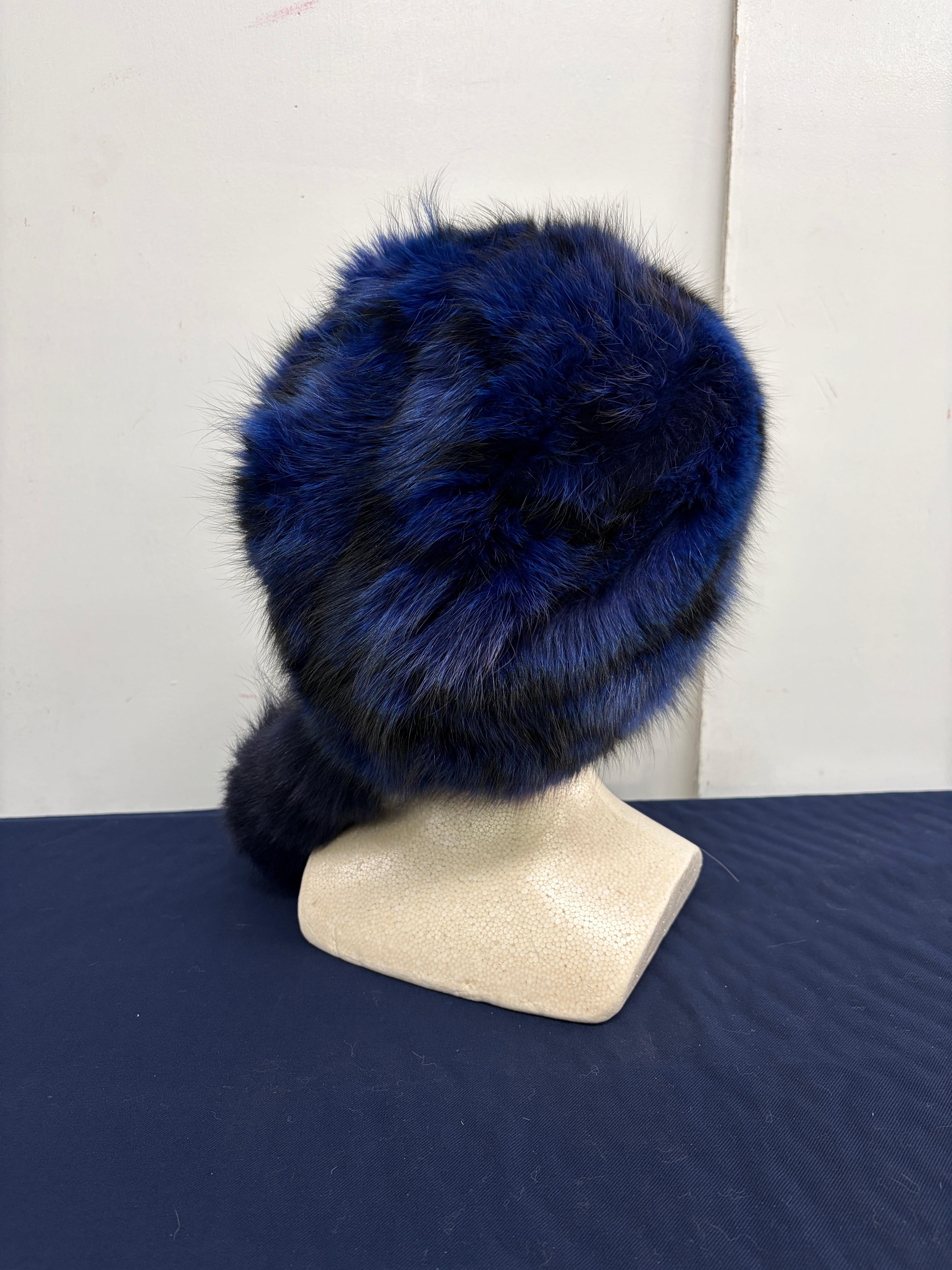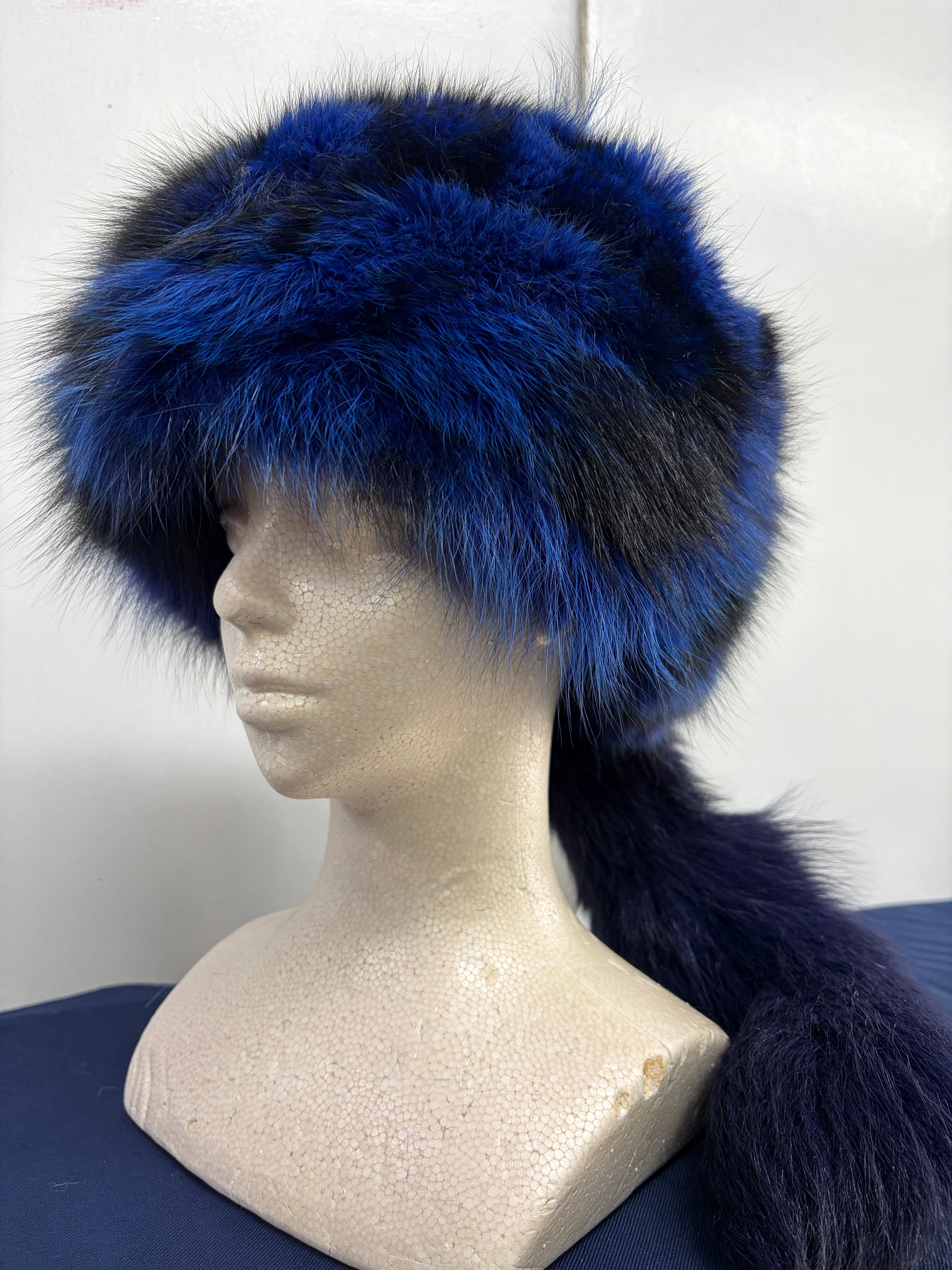 ### Davy Crockett hat ブルーFox刷毛染め 藍色 尻尾着脱ホック 60㎝・61㎝