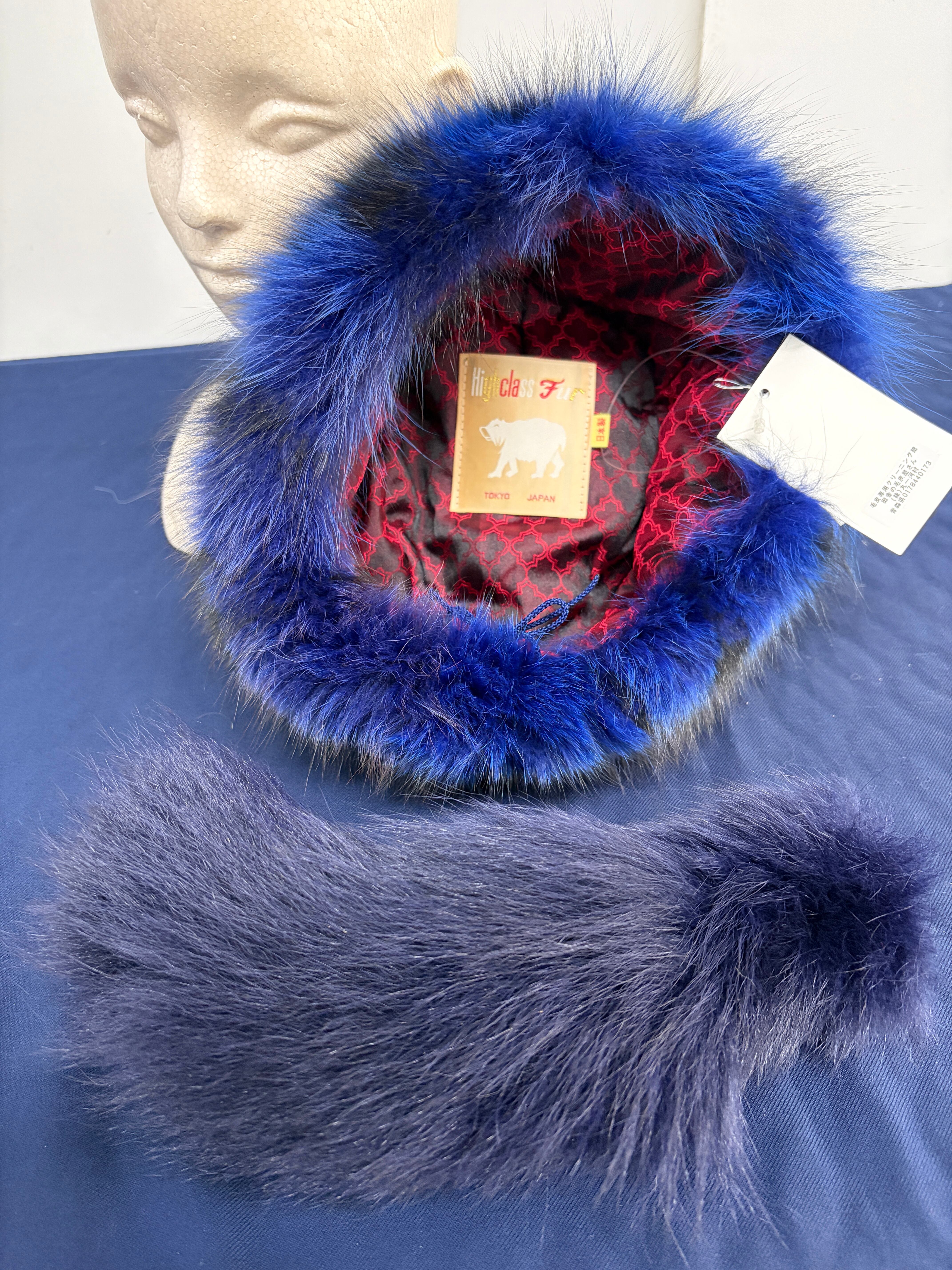 - **素材**:ブルーFoxの高級毛皮を使用し、触れた瞬間に感じる柔らかさと高い保温性を備えています。裏地はポリエステルです。