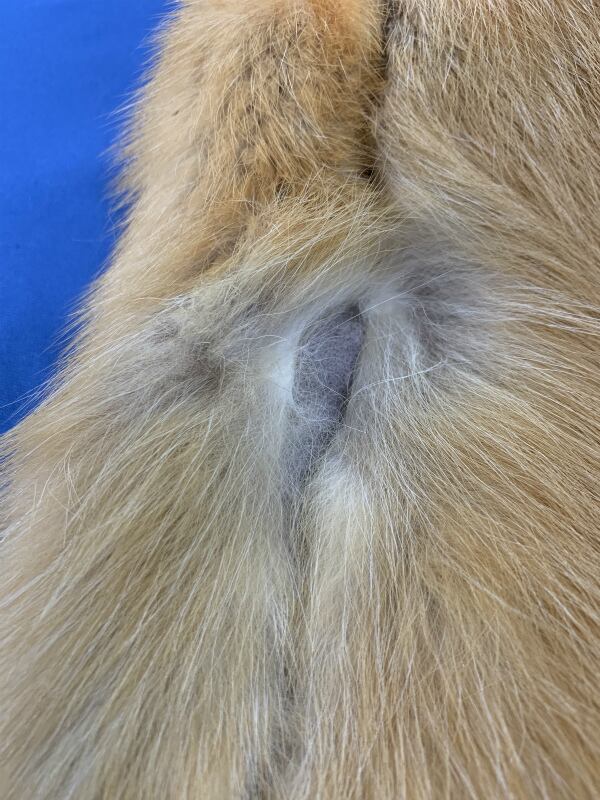 黄貂毛スレ、面積不足分を一部豚革で補修