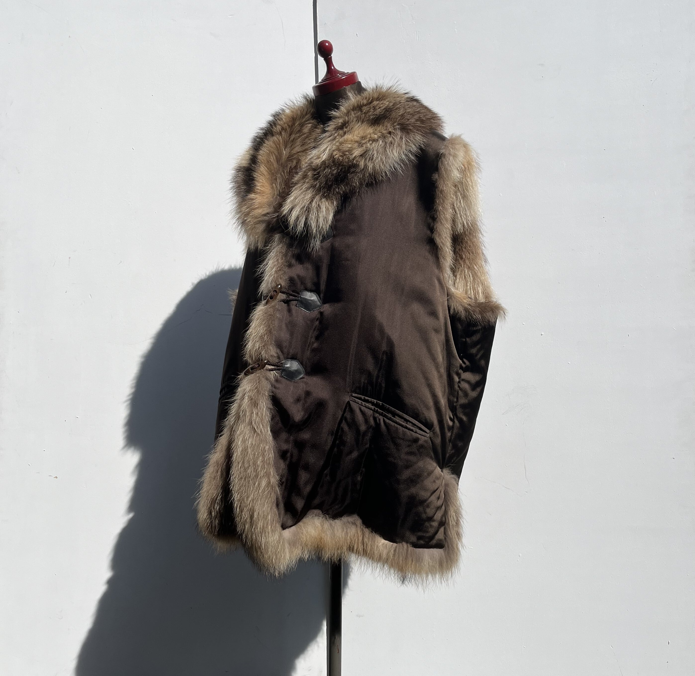 毛皮特大ベスト ニホンタヌキ仕様 サイズ3L~5L ダッフル留め ポケット付き
